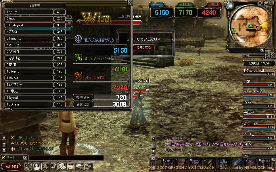 最近ほぼ毎日未開PKしてるせいで名誉もなかなか・・・w